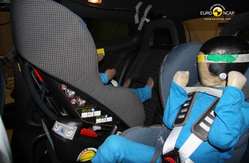 Volkswagen have recently made improvements to the Bobsy G0/1 ISOFIX restraint and, as of October 2009, supply a modified Bobsy G1 ISOFIX seat for use in the Scirocco. Euro NCAP's tests were done with the most recent child restraints and the comments and overall star rating do not apply to vehicles using earlier versions of the restraints. Forward movement of the head of the 3 year dummy, sat in a forward facing seat, was not excessive. Both the 18 month and 3 year dummies were properly contained by the protective shells of their restraints in the side barrier impact. The passenger airbag can be disabled to allow a rearward facing child restraint to be used in that seating position. However, information provided to the driver regarding the status of the airbag is not sufficiently clear. Poor labelling does not adequately indicate the dangers of using a rearward facing child seat without first disabling the airbag.