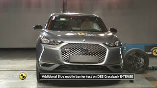 The passenger compartment of the DS 3 Crossback remained stable in the frontal offset test. Dummy readings indicated good protection of the knees and femurs of the driver and passenger. DS showed that a similar level of protection would be provided to occupants of different sizes and to those sitting in different positions. In the full-width rigid barrier test, protection was good or adequate for all critical body areas of both the driver and rear passenger. In both the side barrier impact and the more severe side pole test, protection of all critical body regions was good and the car scored maximum points for this part of the assessment. Tests on the front seats and head restraints demonstrated good protection against whiplash injury in the event of a rear-end collision. A geometric assessment of the rear seats also indicated good whiplash protection. Autonomous emergency braking (AEB), which is available as part of the optional 'Active Safety Brake' pack, performed well in the tests of its functionality at low speeds, at which many whiplash injuries occur.