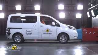 The passenger compartment of the e-NV200 Evalia remained stable in the frontal impact. Dummy readings indicated good protection of the knees and femurs of the driver and passenger but the underside of the steering column and the facia could present a risk to occupants of different sizes and to those sat in different positions. In the side barrier test, protection of all body regions was good, except that of the chest which was adequate. In the more severe side pole test, dummy readings of rib deflection indicated marginal protection of the chest. Protection against whiplash injuries in the a event of a rear-end collision was rated as marginal for both the front and rear seats.