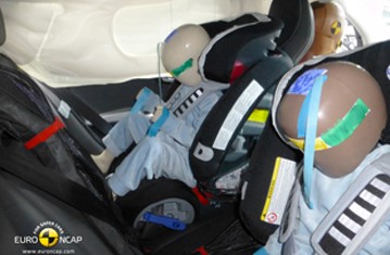 Based on dummy readings in the dynamic crash tests, the V60 hybrid scored maximum points for its protection of the 3 year infant. In the side impact, both dummies were properly contained within the protective shells of their restraints, minimising the likelihood of head contact with parts of the car interior. The passenger airbag can be disabled by means of a switch. However, information provided to the driver regarding the status of the airbag is not sufficiently clear. The dangers of using a rearward-facing restraint in that seat without first disabling the airbag are clearly indicated on labels in the car.