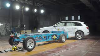 The passenger compartment of the Q7 remained stable in the frontal offset test. Dummy readings indicated good protection of the knees and femurs of both the driver and passenger. Audi showed that a similar level of protection would be provided to occupants of different sizes and to those sitting in different positions. Protection of the chest was marginal for both driver and passenger. In the full-width rigid barrier test, chest protection was again marginal for the rear passenger but other critical body areas were well or adequately protected, for both occupants. In both the side barrier test and the pole impact, protection of all critical body areas was good and the Q7 scored maximum points in these tests. Tests on the front seats and head restraints demonstrated good protection against whiplash injuries in the event of a rear-end collision. A geometric assessment of the front seats also indicated good whiplash protection. The standard-fit autonomous emergency braking (AEB) system performed well in tests of its functionality against other vehicles at the low speeds, typical of city driving, at which many whiplash injuries occur, with collisions avoided in almost all test scenarios.