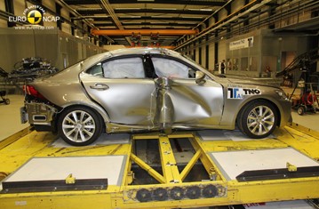 The passenger compartment of the IS 300h remained stable in the frontal impact. Dummy readings indicated good protection of the knees and femurs of both the front seat occupants. Lexus showed that a similar level of protection would be provided to occupants of different sizes and to those sat in different positions. The car scored maximum points in the side barrier test, providing good protection to all parts of the body. Even in the more severe side pole test, protection of the chest was adequate and that of other body regions was good. The seat and head restraint provided good protection against whiplash injuries in the event of a rear-end collision.